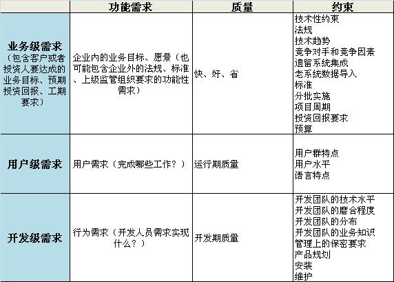 我们的软件产品或者项目,其需求都有三个层级和三个方面。