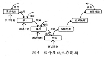 从软件生存周期看,软件测试是卡住软件质量,尤其是卡住软件可靠性的后一道关口。但软件测试并不仅仅局限于这个阶段,而应贯穿于软件开发的全过程(见图4)。应解决这样一个认识问题??用于实时控制系统一类的复杂软件,自认为没有错误的想法是不切合实际的。因此,测试的主要目的是: