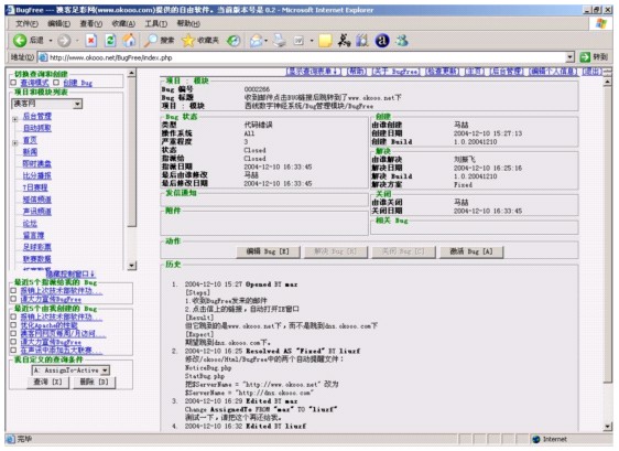 BugFree是其中有关软件研发的Bug管理系统部分。我太了解Bug管理对软件研发的重要性、也对微软的Bug系统有了深入掌握,所以需要有一个类似微软的Bug系统才好开展工作。虽然网上有免费的Bug管理系统(如Mantis、Bugzilla),但是我看后觉得都不好使,和我在微软用的差别太大,上海科泰世纪公司的Bug管理系统倒也很像微软的,但是要花钱买。琢磨着反正我也这一块非常熟悉了,何不做一个出来自己用?于是决定借鉴微软的研发流程和Bug管理工具自己开发一个,以便对我们开发新网站、声讯软件、客户端软件和公司事务管理中出现的问题进行有效的跟踪处理。