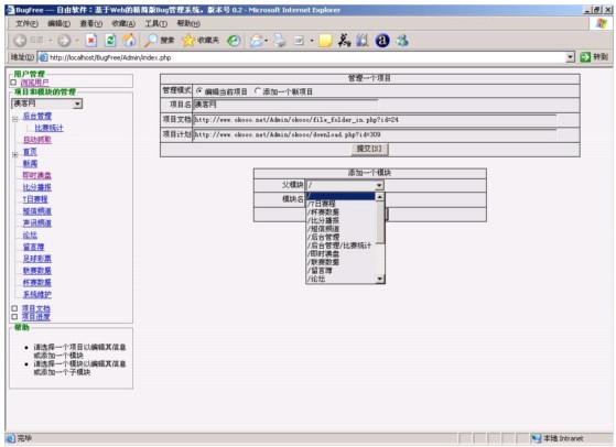 然后是简单的项目/模块管理,管理员可以方便的增加新的项目、新的模块,或者更改已有项目/模块的显示名字: