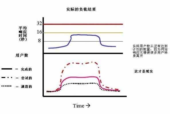 上图是大多数人得到的一个典型的测试结果,看上去很美,但它不符合现实情况。你的计算机、测试脚本有足够的耐心等待,但实际用户没有。在这个讲究效率、信息爆炸、社会高速运转的现实世界是什么样呢?