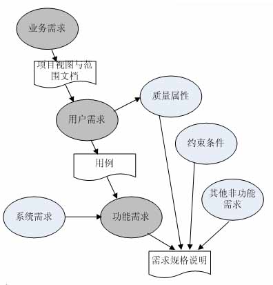 软件需求包括三个不同的层次?业务需求、用户需求和功能需求?也包括非功能需求。业务需求( business requirement)反映了组织机构或客户对系统、产品高层次的目标要求,它们在项目视图与范围文档中予以说明。用户需求(user requirement) 文档描述了用户使用产品必须要完成的任务,这在使用用例(use case)文档或方案脚本( s c e n a r i o)说明中予以说明。功能需求(functional requirement)定义了开发人员必须实现的软件功能,使得用户能完成他们的任务,从而满足了业务需求。所谓特性( f e a t u r e )是指逻辑上相关的功能需求的集合,给用户提供处理能力并满足业务需求。[6]