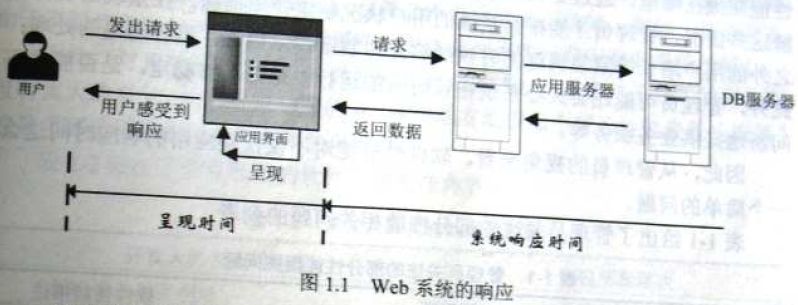 用户所体会到的“响应时间”既有客观的成分,也有主观的成功。例如,用户执行了某个操作,该操作返回大量数据,从客观的角度来说,事务的结束应该是系统返回所有的数据,响应时间应该是从用户操作开始到所有数据返回完成的整个耗时;但从用户的主观感知来说,如果采用一种优化的数据呈现策略,当少部分数据返回之后立刻将数据呈现在用户面前,则用户感受到的响应时间会远远小于实际的事务响应时间。