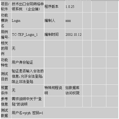 至于用例文件格式,可以是.DOC或.XLS(如果有专门的测试用例管理工具另当别论)。