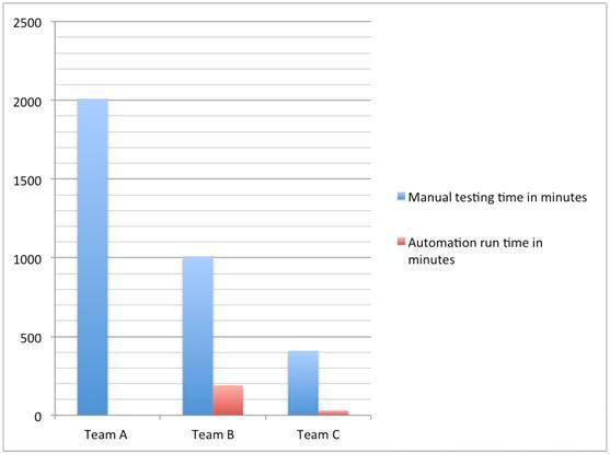 对团队C - 这三个团队中情况好的。坏场景是团队C在3小时之后才知道他们是否提交了blocker。因为80%的测试用例都进行了自动化,20分钟他们能知道是否有错误。从团队A到团队C有很长一段路要走,但20分钟比2天要好得多。