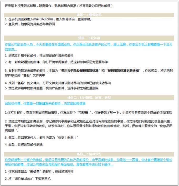 任务的顺序尽量符合典型用户的典型操作流。还是以上面的例子说话,用户在邮箱中的操作流一般是【登录-查看收件箱-阅读未读邮件-处理一些邮件-(写邮件-保存邮件-发邮件)】,尽量避免让用户感觉到突兀。