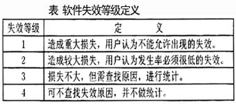 ---- 一般的等级定义如下表所示。首先判断是否存在出现危害度较大的1级和2级失效的可能性,如果存在,那么,应该进行故障树分析,标识出所有可能造成严重失效的功能需求和其相关的输入域,以及外部条件和发生的可能性。对引起1级和2级失效的功能需求及其相关的输入域必须进行严格的强化测试;对引起3级失效的功能可按其发生概率选择测试实例。