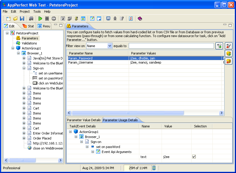 测试编辑器——任务:记录得每一个URL被称为一个任务。点击左边树视图上的任何任务节点看以查看该节点的详细信息。
