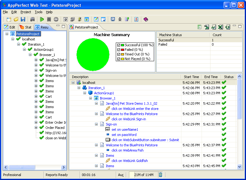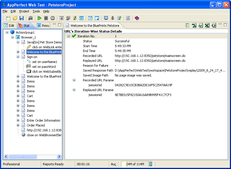 测试回放状态视图:当一个测试被回放,你的应用程序被调用时,你会看到在你应用程序上执行每一个动作。此外,这种状态视图在Web测试还提供额外的测试信息回放。