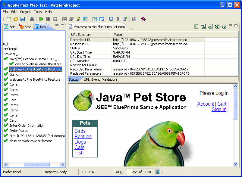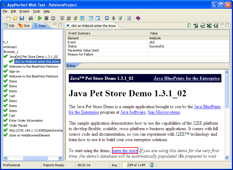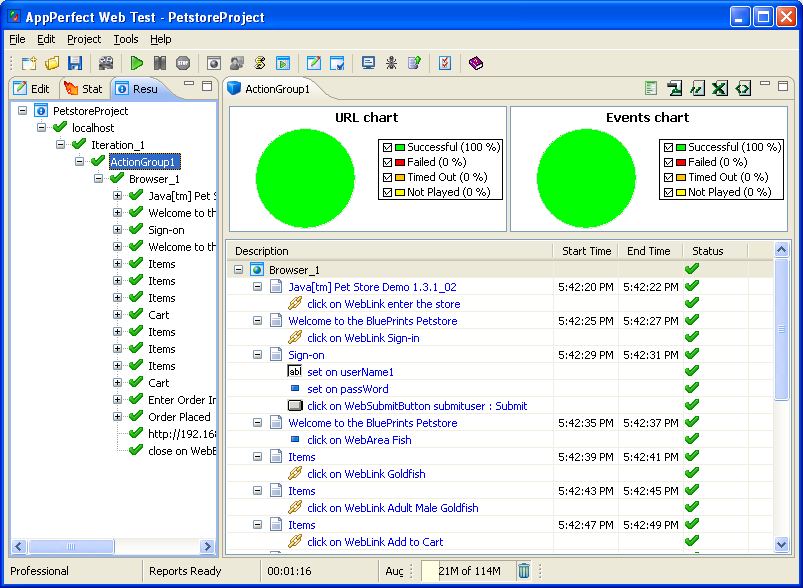 结果——项目简介:一旦你的测试是完全回放,结果会自动显示在Results选项卡中的项目汇总视图中