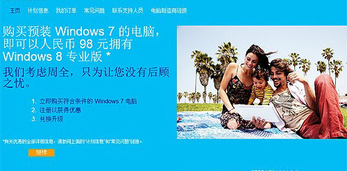 虽然看起来你需要有一个全新的、预装了Win7的电脑才能享受到这个优惠计划,但是微软的这个计划有一个玄机,那是购买电脑的日期你可以自己填。也是说,只要你有个预装了Win7的笔记本或品牌台式机,能够用98元的价格购买一套Win 8系统,并且你还能决定将这套Win 8装在哪台电脑之中。