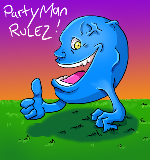 然而,“狂欢者”有了一小队粉丝。这些粉丝的头像图标里包括Mario, Link, Samus,等等。事实上我把这个游戏发给了Touch Arcade的Jared(嘿,是他向我要的)。之后,让我大吃一惊和无比高兴的是,Retro Dreamer的Craig Sharpe创作了我的第二张正规的粉丝的艺术作品!下面是Craig为“狂欢者”创作的杰作: