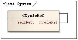 原因是CCycleRef类进行了自引用,引用计数增加所致,类图如下。