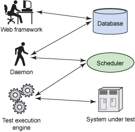 然后日程安排者会将任务交给测试执行引擎,与测试系统相交流。