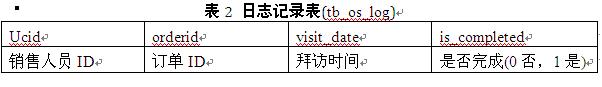 由于盘古项目的计算流程较为复杂且需要许多业务相关知识,这里为举一个简化的模拟场景来说明本文所述基于存储过程的测试方法。表2为原始记录数据表(tb_os_log),记录了销售人员工作拜访日志,
