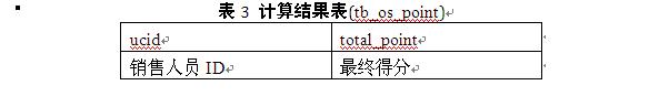 表3为销售人员得分表(tb_os_point),这个表已经预先存入参加评分的销售ID,