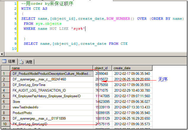 图7.虽然在CTE中中有序,但显式指定Order By,则不能保证结果的顺序