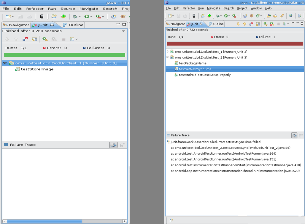 在Eclipse中,运行后,会有JUnit 标签页,显示运行结果: