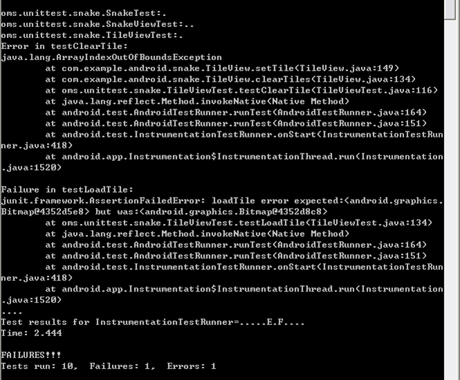 adb shell am instrument -e class oms.unittest.snake.SnakeTest#testOnPause -w oms.unittest.snake/android.test.InstrumentationTestRunner