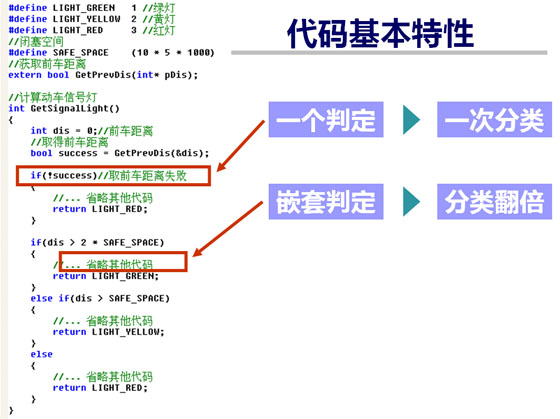 代码通常会有很多的判定。一个判定,是一次分类。嵌套的判定,会使分类次数的翻倍。