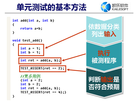由上面的分析可以看出,单元测试的基本方法是:依数据的分类列出输入,执行被测试程序,然后,判断输出是否符合预期。