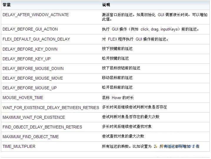 RFT 在识别测试对象,模拟鼠标,键盘事件过程中,都使用了一些默认值。这些值能保证测试脚本在一台性能不错的测试机上成功执行,但遇到一台很慢的测试机,往往会失败。可以通过 API 来修改这些与时间相关的选项,适当的增加延迟让脚本更加健壮。这些选项的常量定义在 com.rational.test.ft.script.IOptionName 中。RationalTestScript.setOption()/resetOption() 可以改变这些选项,也可以通过 getOption() 来获得选项的值。例如被测程序不能处理过快的用户输入,可以如代码清单 5 所示改变输入文字的速度。表 1 中是 RFT 支持的有关时间的所有选项。