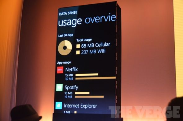 另一项着重介绍的功能名为Data Sense,该功能基于云操作,在手机装有相应客户端,可以将网络数据压缩到小值。而在该应用瓷片上会显示消耗的数据流量,并提供上限预警。另外,该应用可检测周围可用WiFi网络并自动连接。官方称,使用Data Sense后可节省约45%的流量。该功能将于将年秋季率先登陆Verzion,目前并没有提到是否会在其他运营商提供。