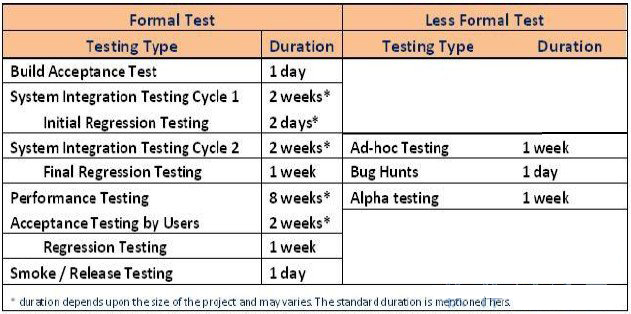 在我的测试生涯中,不管我在哪家公司工作,每次有新产品需要测试的时候,我都会在系统集成测试结束后加入一轮随机测试,来说明随机测试的重要性。为一个全新的产品(新产品的第一版)做常规测试之前我也会做同样的事情。在常规测试之后,发布下一版本之前或者是把产品送交产品管理团队进行可接受性测试之前,我也会做同样的事情。在我的测试策略/方法文档里,我都是按照下表来安排正式和非正式这两种测试的。