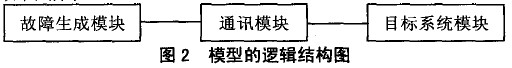 (二)模型的逻辑结构。基于以上设计思想,本模型在逻辑上可分为三个模块:故障生成模块、通讯模块和目标系统模块。如图2所示。