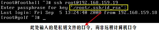 此处输入的是私钥文件密码,而不是远程计算机root用户的密码。