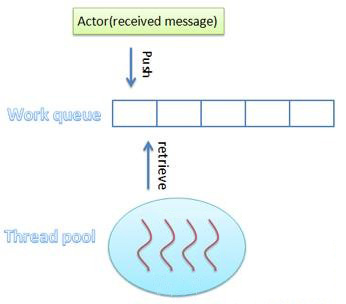 接收到消息的 Actor 会被放置于一个线程安全的 Work 队列中,此队列中的 Actor 会被唤醒的工作线程取出,并进行消息的处理。这个过程中有两个需要注意的地方: