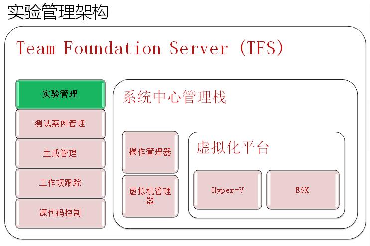 实验室管理平台通过集成Team Foundation Server和Hyper-V虚拟化平台来实现,主要由以下3个模块组成:
