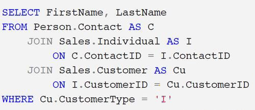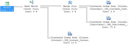 1、我们在代码中Join的顺序是:(Contact Join Individual)Join Customer,但是在执行计划中的Join顺序却是:(Sales.Customer JOIN Sales.Individual) JOIN Person.Contact。