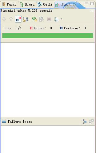 单击运行后,应用程序将启动,在Eclipes中会出现个新的面板JUnit,如下: