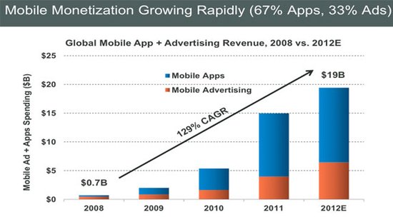•移动战略将成为你产品发展的重要部分。在2008年,移动市场产值(应用收入+广告收入)仅7亿美元,但到了2012年底,这个数值接近190亿美元。