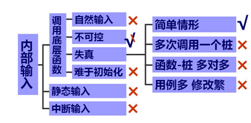 遗憾的是,编写桩代码不但增加工作量,而且不能解决所有的内部输入,下面对内部输入分类分析: