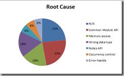 ● 关注Bug的Root Cause。我觉得一个好的QA不仅发现Bug, 而且应该有意识的尝试提出Bug预防策略。通过把Bug分类,把Root Cause类似的bug放一起,你会发现很多Bug是可以避免的。比如,之前SEG在处理一个用户提交的bug时,发现这是由于用错了数据类型。而在这一版中,也发现了三四个由于用错数据类型导致crash的例子。如果能整理出来,给RD,让他们有这个意识,这样的Bug可以避免。下面这个图统计的是导致crash的Root Cause有哪些。