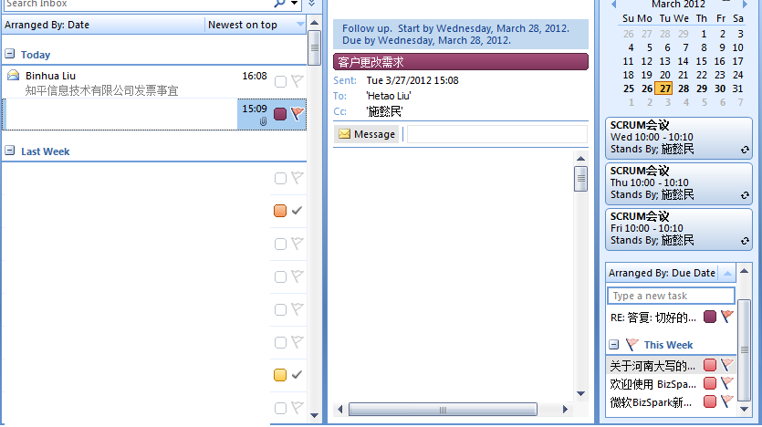 a. 上图里,标有小红旗的邮件都是我需要处理的,而我在标红旗的时候,视情况决定处理的时间,如上图右下角“ThisWeek”下面的列表。