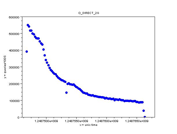 在以上图中,可以很清楚得看到了性能拐点!性能在数据量达到750万的时候出现了一个大大的降幅!那么,这个性能拐点是不是由buffer的设置引起的呢?再来做个实验验证一下!