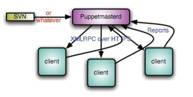 “当然没问题。”Joe拿起笔在白板上画了一个Puppet的工作示意图,如下图所示。