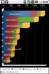 其中括号中的Android版本号,是对应机型上市时预装的系统版本,特别标出供各位参考。其中Google Nexus One在刷了Android 2.2版ROM后,处于的头名位置。