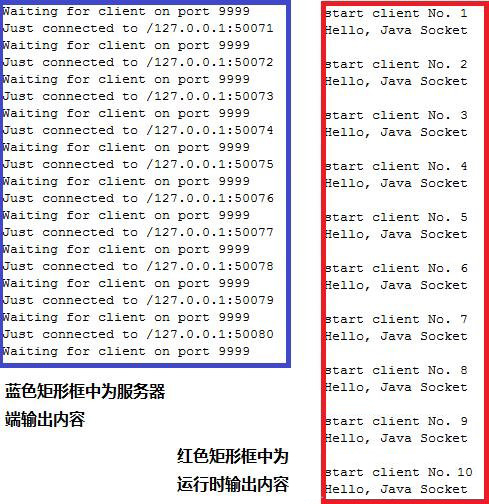 启动10个客户端去连接服务器端,接受到服务器端问候以后客户端关闭连接。