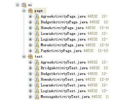 对于Test Case的组织如下图,page包中每个Activity都对应一个ActivityPage,test包中的用例可以重用不同的ActivityPage: