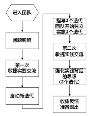 接下来我们的专业敏捷教练会下到团队通过如图1的步骤开展敏捷实施工作。