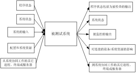 图1是Doug Hoffman提出的被测对象可能的失效来源。从图中可以看出,系统的失效可能来自程序状态、系统状态、系统的输入、配置和系统资源、与系统协同工作的其他部分,例如:终端或者服务器的问题等。脚本化测试将更多的关注点放在测试设计上面,而在测试过程的早期,测试人员将这些不同来源的系统失效全部考虑进去是非常困难的。