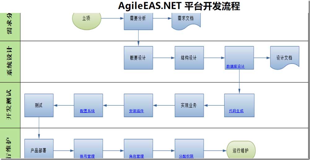 上面说了那么多,下面我们来说说我们目前的平台AgileEAS.NET平台,首先我们所有的东西,不管是产品还是解决方案,都是基于AgileEAS.NET平台之上构建的产品或解决方案,所以我们所有的技术指导等方面都是基于AgileEAS.NET敏捷快速开发平台之上来说的,一是平台的构建是基于软件工程的思想为指导来构建的,所以我们的平台是融合了软件工程的思想在其中。