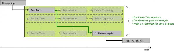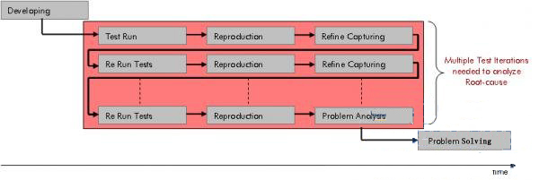当改进完成了之后,测试会再进行一次。如果你很幸运,你会在第一次改进后获得你想要的数据结果。但据我所观察的结果是通常要好几轮改进之后你才能得到能够让你分析出问题出在哪里并且能够用来修正程序的报告信息。这些额外的测试迭代会耗费测试者以及开发人员的大量时间。如果你有独立的测试团队或者你外包了测试,那你或需要额外的开销来应付这些迭代测试。
