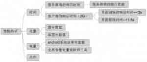 界面流畅性、界面切换时间、占用的内存数、服务器返回数据消耗流量大小及数据的返回时间;