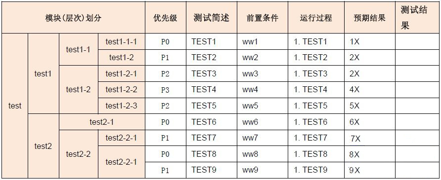 具有树型结构、清晰层次关系的测试用例。审核人员一般会先审核树枝是否全面覆盖需求、是否有冗余,然后再审核树叶是否全面、是否有冗余。如果具有这样的层次关系,用户也能很好地维护测试用例。