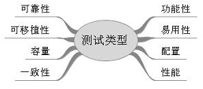 在前面的文章中,我们提到了测试类型定义需要综合考虑各个方面的输入,包括开发文档定义的需求(包括涉及的一些标准与规范等)、ISO/IEC 9126质量模型、测试经验,以及通过分析在研发阶段发现的缺陷、产品发布之后用户反馈的缺陷分析等。图1是结合数据通信产品的特点,而定义的测试类型: